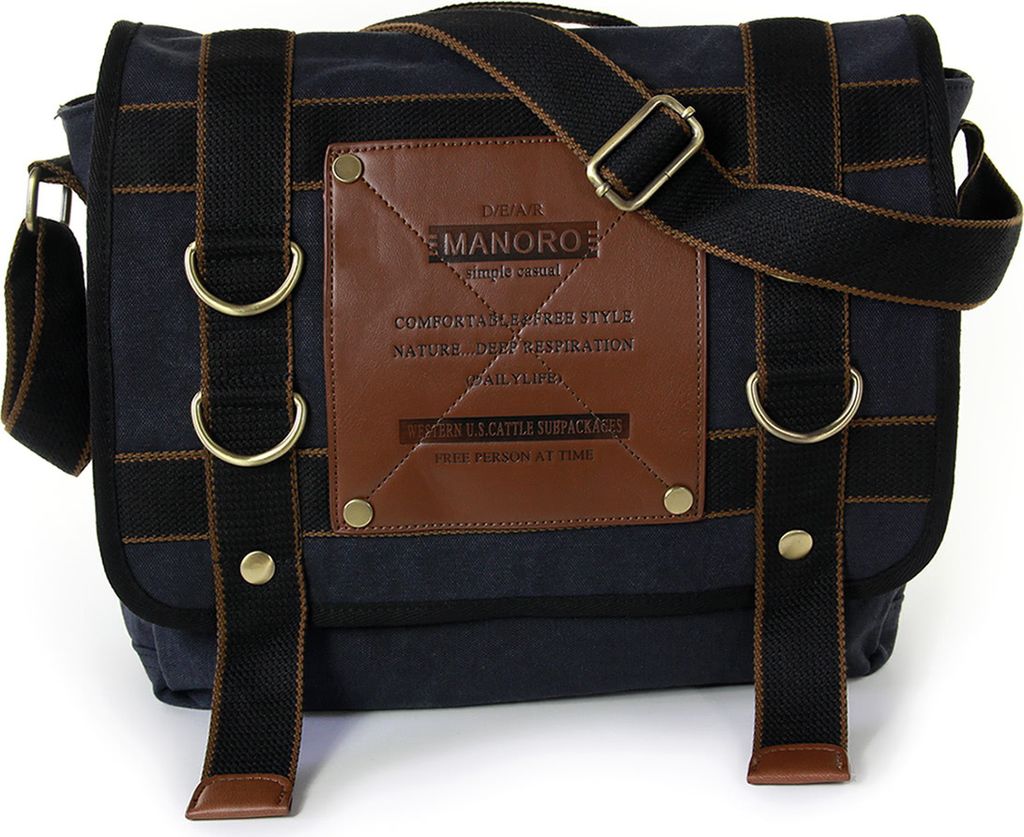 Manoro Canvas Tasche Vintage Herren Messenger Bag schwarz 35x12x32 inklusive Feenanhänger D2OTK212S