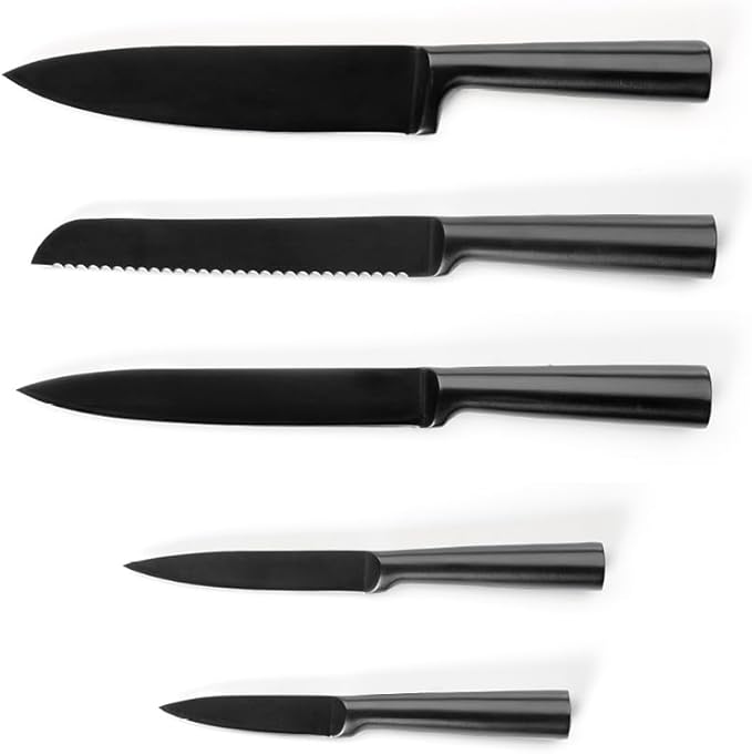 Axer Messerset Bunt 5-teilig - Edelstahl Küchenmesserset mit Antihaftbeschichteter und Scharfer Klinge Koch- Brot- Universal- Schneide- und Gemüs...
