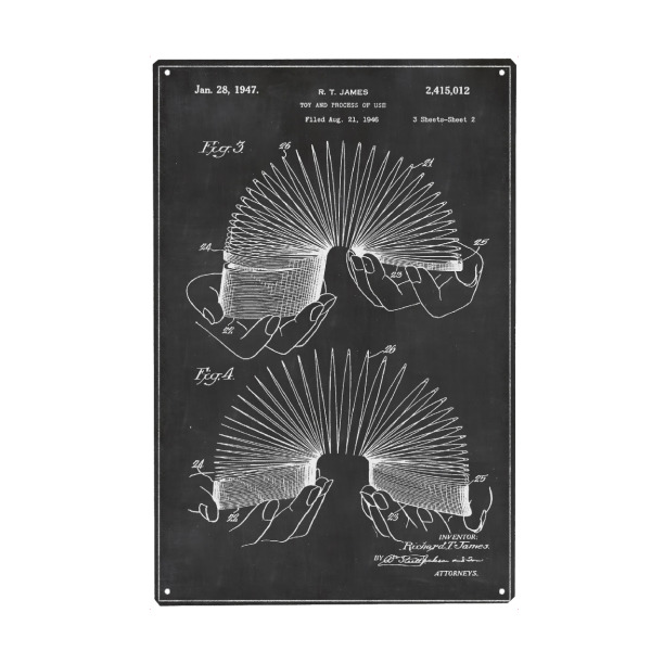 Metall Poster "Slinky patent" artboxONE - Für Kinder,Für Kinder,Schwarzweiß,Retro - Spielzeug,Slinly,Retro,Vintage,Kinder,Patent,Kinderzimmer