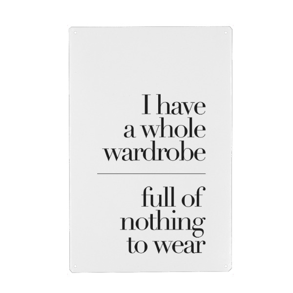 Metall Poster "A WARDROBE FULL OF NOTHING" artboxONE - Typografie,Schwarzweiß,Fashion,Lustig