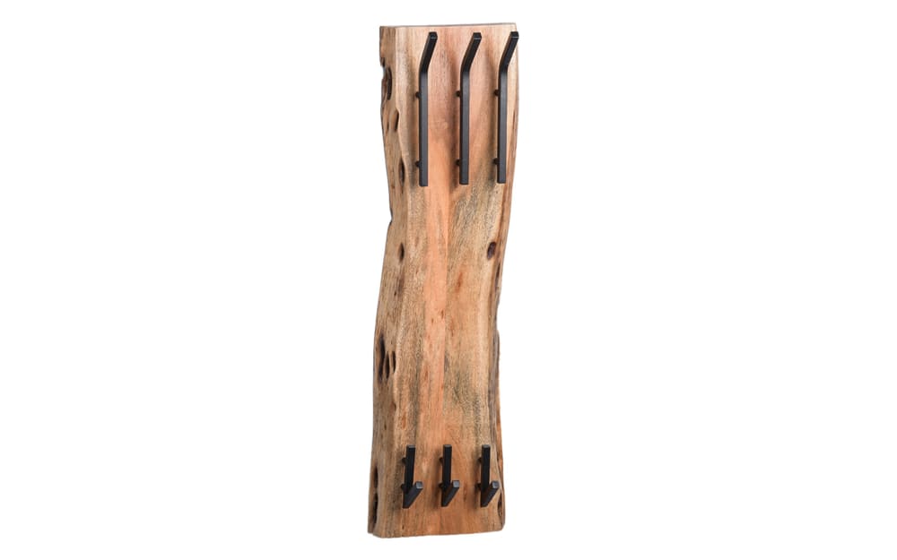 SIT Möbel Wand-Garderobe | 3 Doppel-Haken aus Metall schwarz | Altholz braun | B 35 x T 8 x H 110 cm | 05163-30 | Serie ALMIRAH