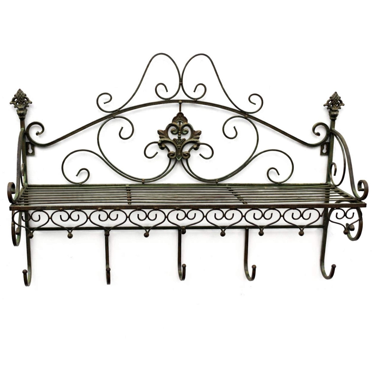 DanDiBo Wandgarderobe mit Ablage 60 cm Antik Metall Garderobenleiste Holz Hängegarderobe Garderobenhaken Malega Kleiderhaken 12205 Garderobe Vintage