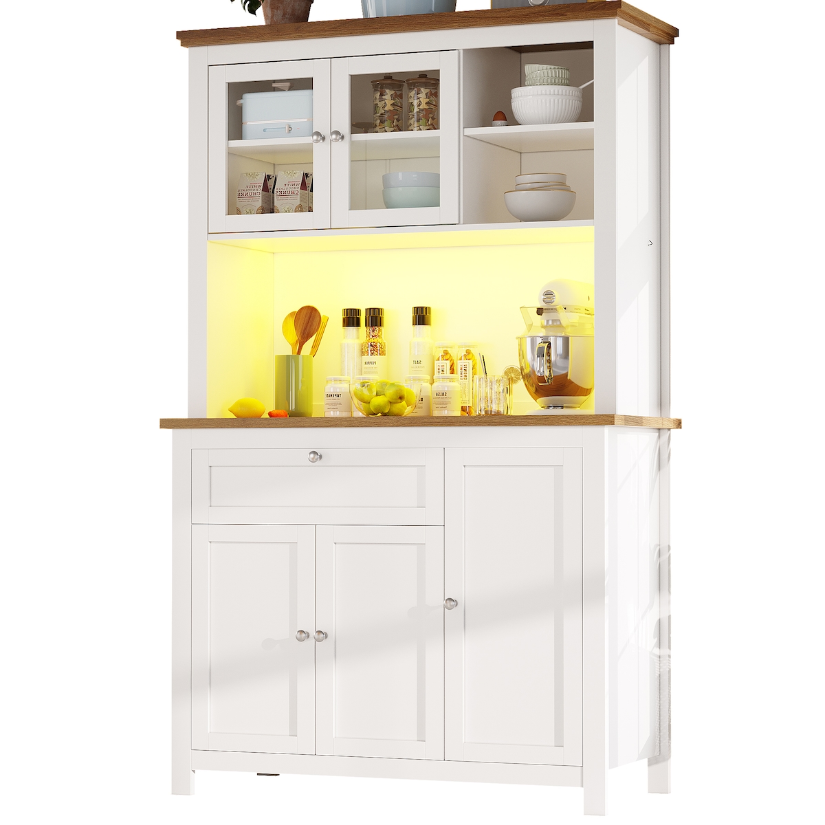 COSTWAY 5-stöckiger Küchenschrank hoch, Küchenregal, Mikrowellenständer mit Rollen, 4 PC-Klapptüren & 4 Haken, Standregal Metall, Hochschrank