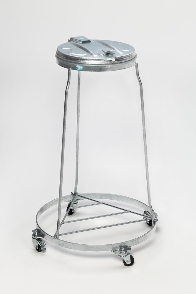 PROREGAL Stapelbarer Abfallsammler mit Metall-Deckel | Fahrbar, mit Rollen | 120 Liter, HxBxT 98x64x64cm | Stahl | Feuerverzinkt | Mülleimer