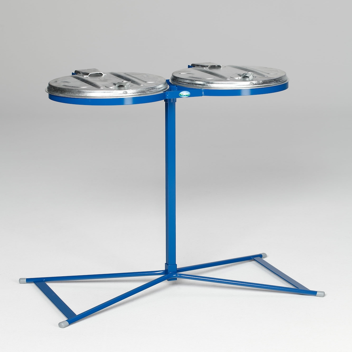 PROREGAL Robuster Doppel-Abfallsammler mit Metall-Deckel | Stationär | 2x 120 Liter, HxBxT 98x85x48cm | Stahl | Blau-Verzinkt | Mülleimer Abfalleimer