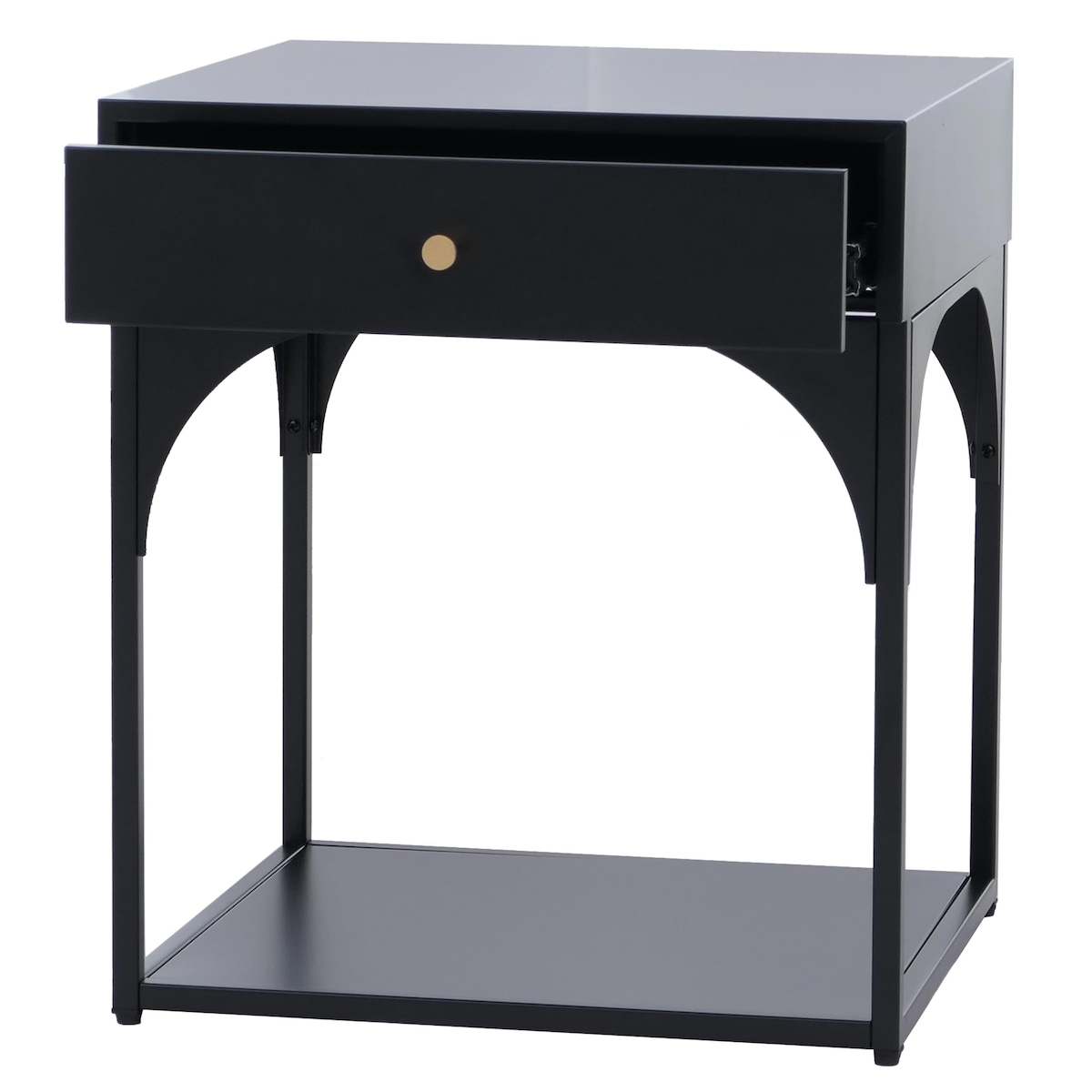Mendler Nachttisch HWC-O88, Kommode Beistelltisch Nachtschrank Nachtkasten, Schublade Metall 50x43x41cm ~ schwarz