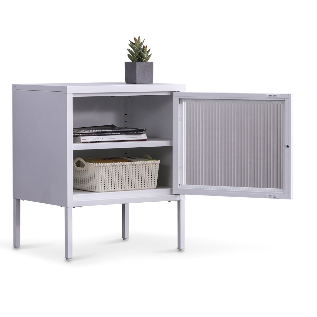 Nachttisch Tokio Weiß aus Metall mit Glastür