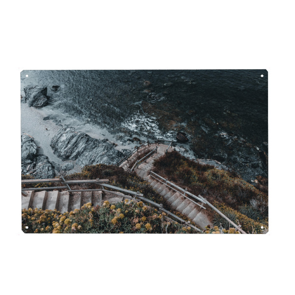 Metall Poster "Stairway Up and Down" artboxONE - Natur,Reise - Reise,Treppe,Strand,Stairway,Felsen,Blumen,Ocean,Natur,Meer,Sea,Beach,Coast,Küste