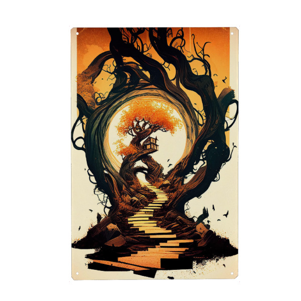 Metall Poster "Surreale Treppe zum Baumhaus" artboxONE - Abstrakt