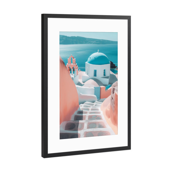 Poster mit Rahmen Schwarz (Metallic) "Santorini-Treppe zum Himmel" artboxONE - Architektur,Reise / Strand und Meer,Reise / Länder