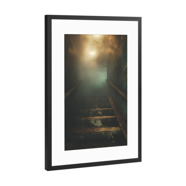 Poster mit Rahmen Schwarz (Metallic) "Staircase to the fog" artboxONE - Natur - Treppe,Düster,Natur,Weg,Illustration,Nebel,Ki