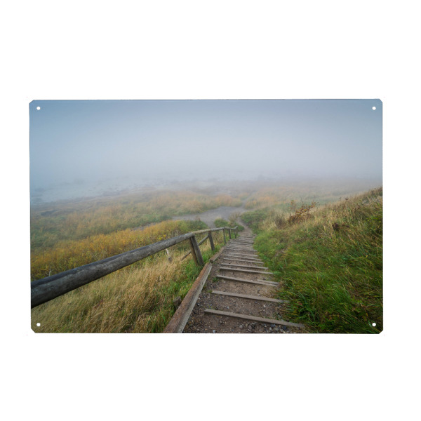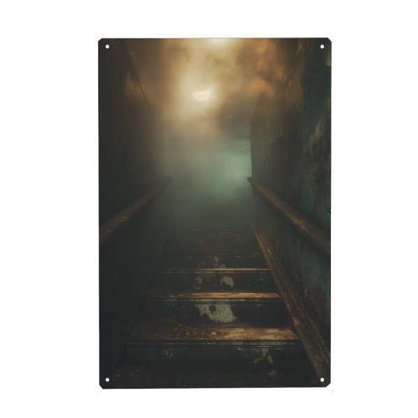 Metall Poster "Staircase to the fog" artboxONE - Natur - Treppe,Düster,Natur,Weg,Illustration,Nebel,Ki - Blechschild