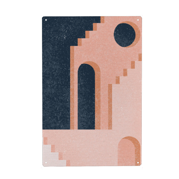 Metall Poster "Metafisica Vision" artboxONE - Abstrakt,Architektur - Treppe,Bögen,Nacht,Geometrisch,Architektonisch,Portal,Surreal - Blechschild