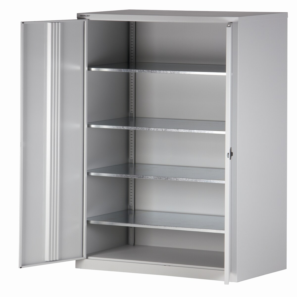 BISLEY Universal Flügeltürenschrank abschließbar - Stahlschrank mit 3-Punkt-Schloss, Tiefe: 50 cm - Werkstattschrank aus Metall mit 1 verzinkten