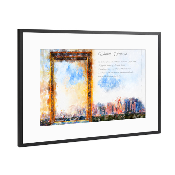 Poster mit Rahmen Schwarz (Metallic) "Dubai Frame Aquarell" artboxONE - Architektur,Reise / Strand und Meer,Städte / Dubai
