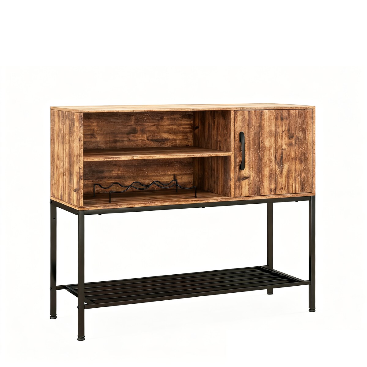COSTWAY Sideboard mit Weinregal & Metallregal, Küchenschrank aus Holz, Weinschrank, 35 x 100 x 83 cm, Konsolentisch
