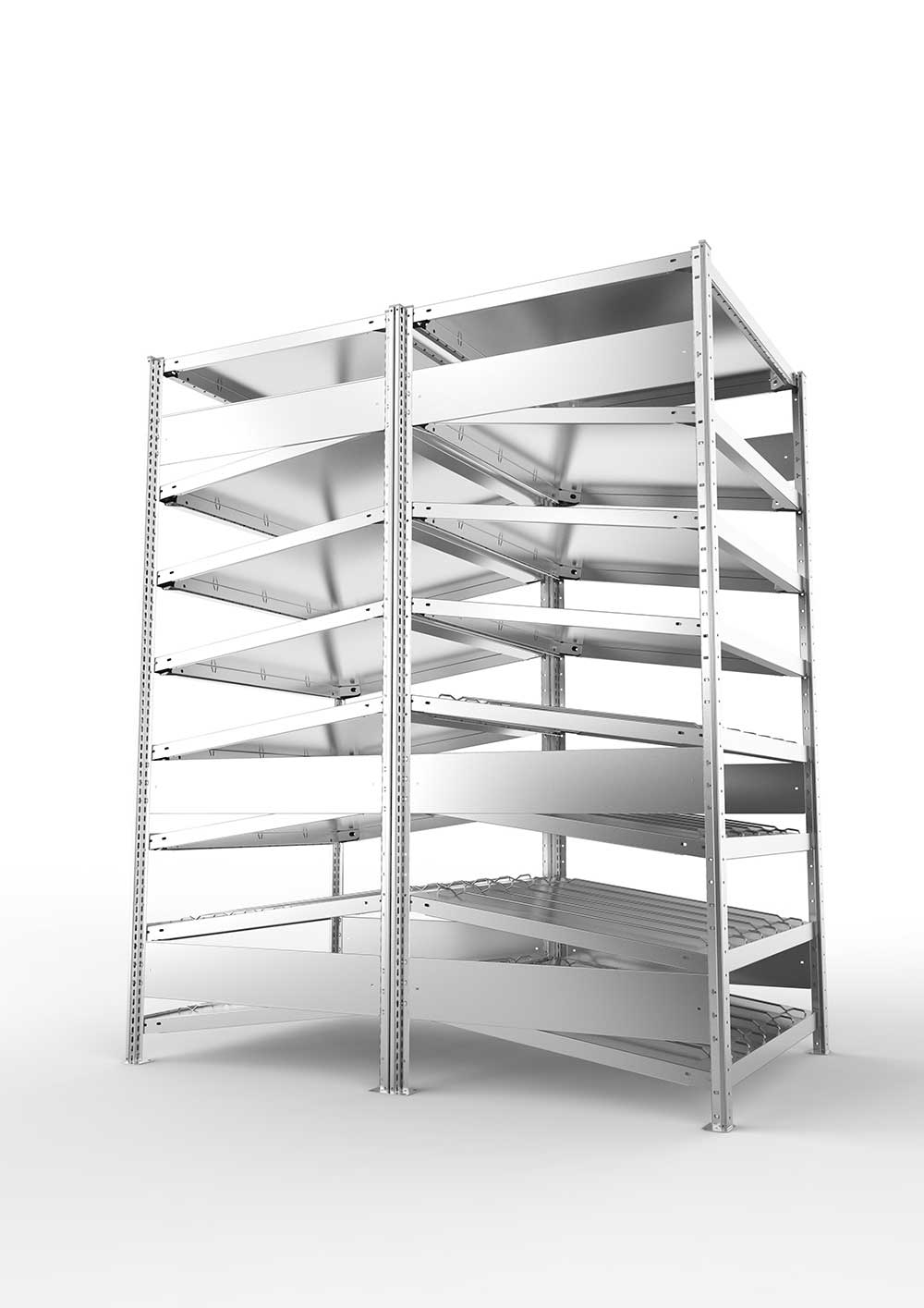 Metallregal Schrägbodenregal Metallregal 14° S3 Doppelgrundregal für Regalsystem Metall 2000 x 1000 x1600 ( 2 x 800 ) vzk kpl. ( KANBAN )