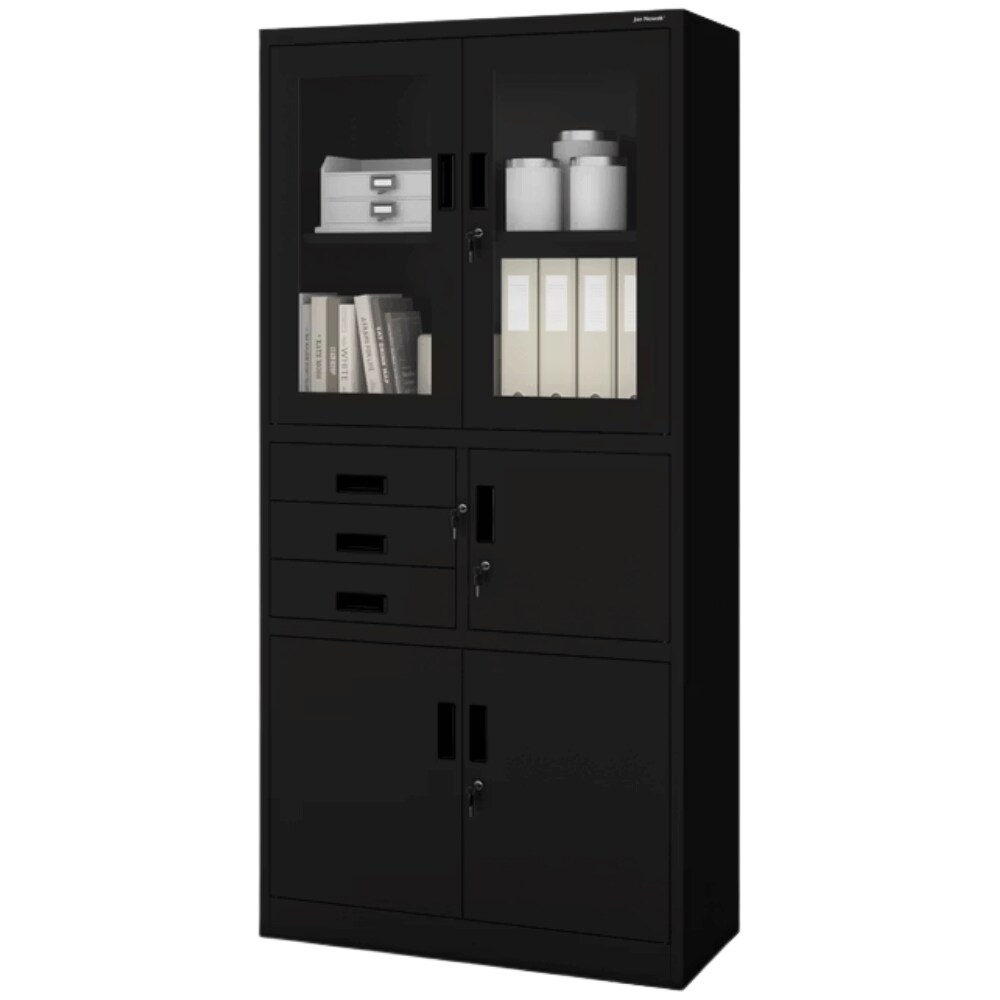 Metallschrank - Kaltgewalzter Stahl, Schwarz, Abschließbar, für Büro und Home-Office