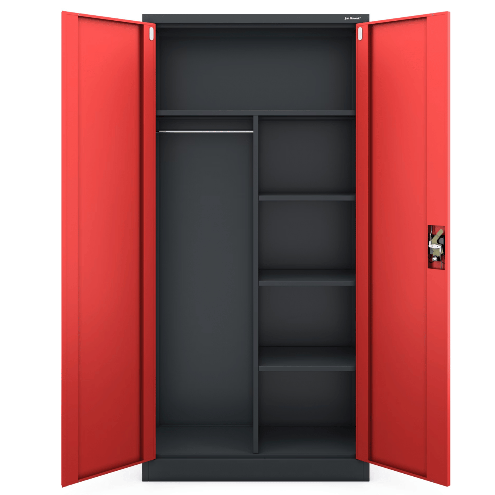 Metallschrank abschließbar KODLI - Geheimfach, 4 Ebenen | Aktenschrank Büroschrank Stahl Mehrzweckschrank Werkstatt Werkzeugschrank, 185x90x45cm ...