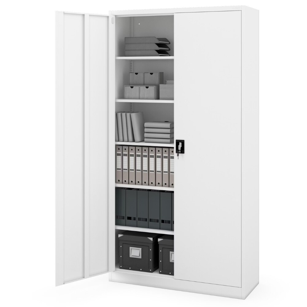 5-Stockiger Bürokommode-Regalschrank mit 2 Magnetischen Türen - Abschließbarer Lagerschrank - Metallschrank für Büro und Zuhause - Weiß - 90,...