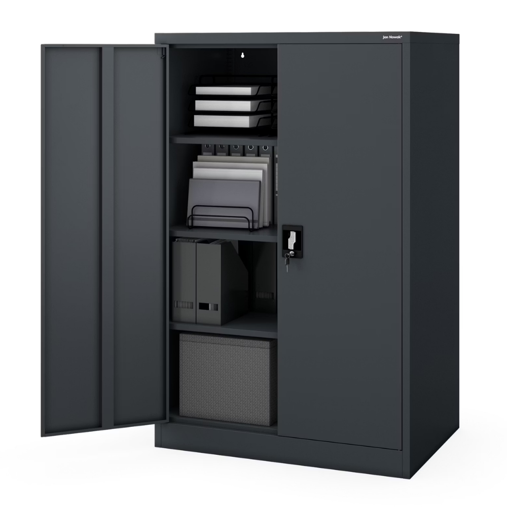 Metallschrank mit Schloss für Büro und Werkstatt BEATA D600 900 x 930 x 600 mm schwarz