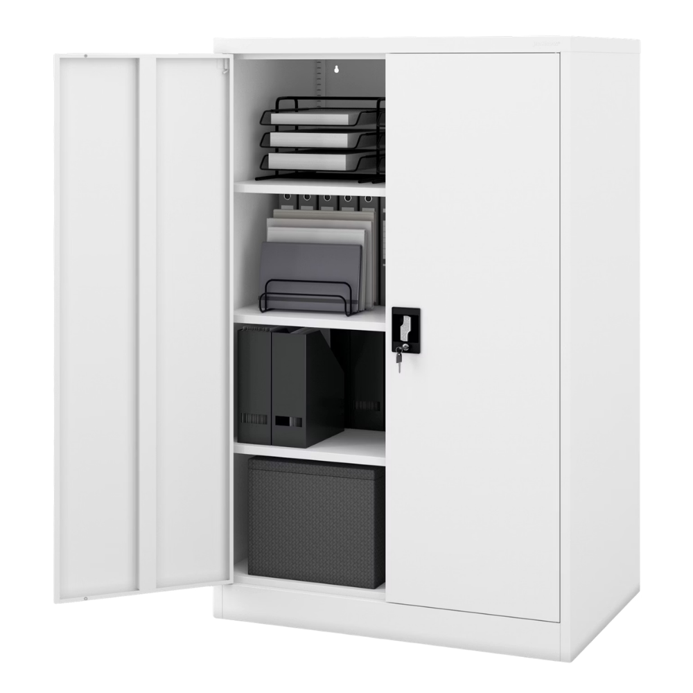 DELUKE Aktenschrank abschließbar KADO 3 Ebenen verstellbar Flügeltüren Metallschrank Werkstatt Büroschrank aus Stahl Werkzeugschrank 93x90x60cm Weiß