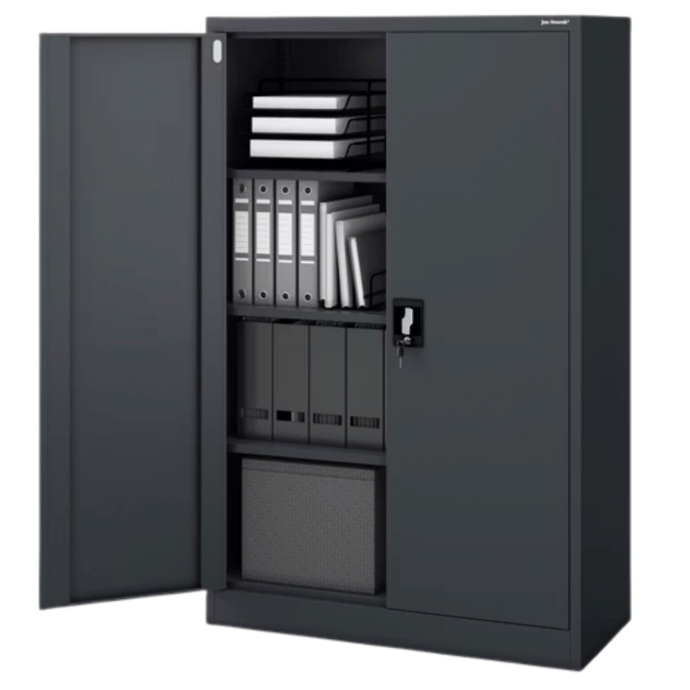 DELUKE Aktenschrank abschließbar KADO - 4 Ebenen, Flügeltüren | Metallschrank Werkstatt Büroschrank aus Stahl Werkzeugschrank, 140x90x40cm Anthrazit