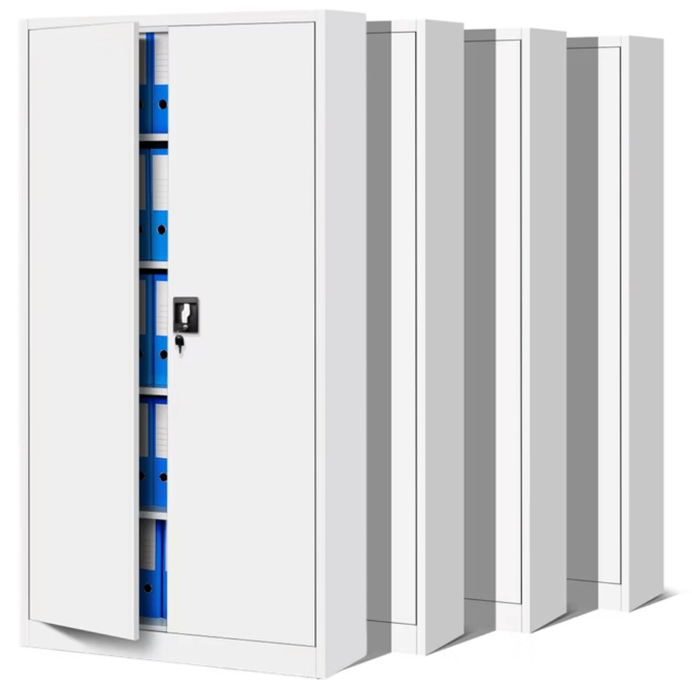 DELUKE Aktenschrank abschließbar KADO 4 Ebenen verstellbar Flügeltüren Metallschrank Werkstatt Büroschrank aus Stahl Werkzeugschrank 140x90x60cm Weiß