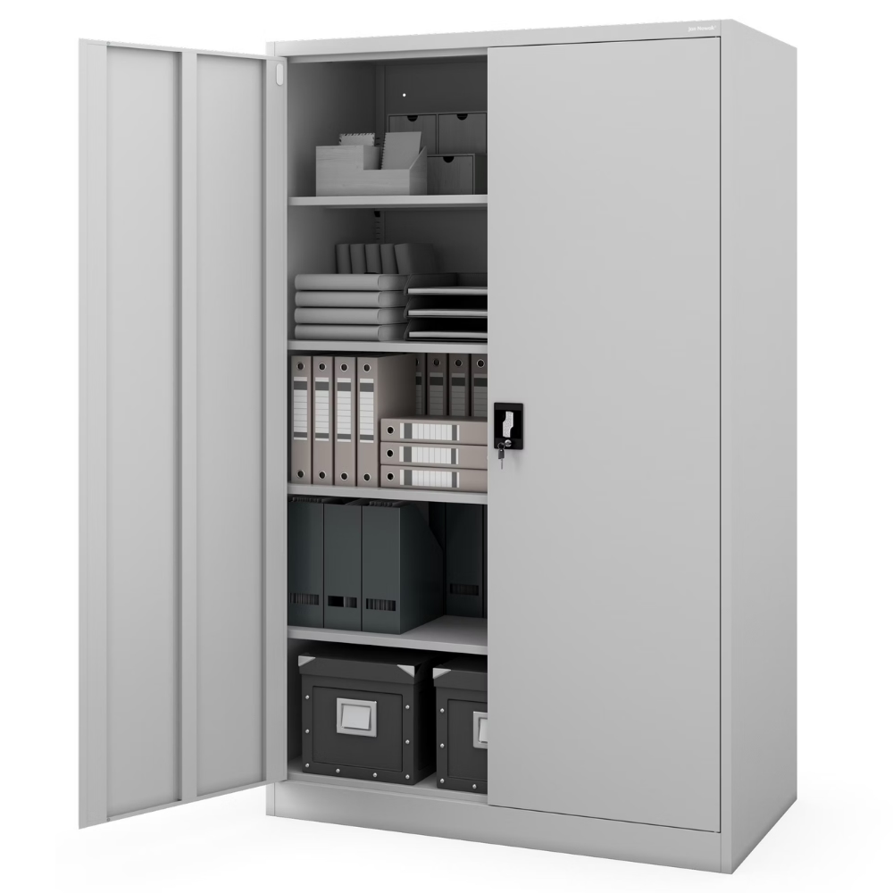 Aktenschrank abschließbar KADO - 4 Ebenen verstellbar, Flügeltüren | Metallschrank Werkstatt Mehrzweckschrank Büroschrank aus Stahl Werkzeugsch...