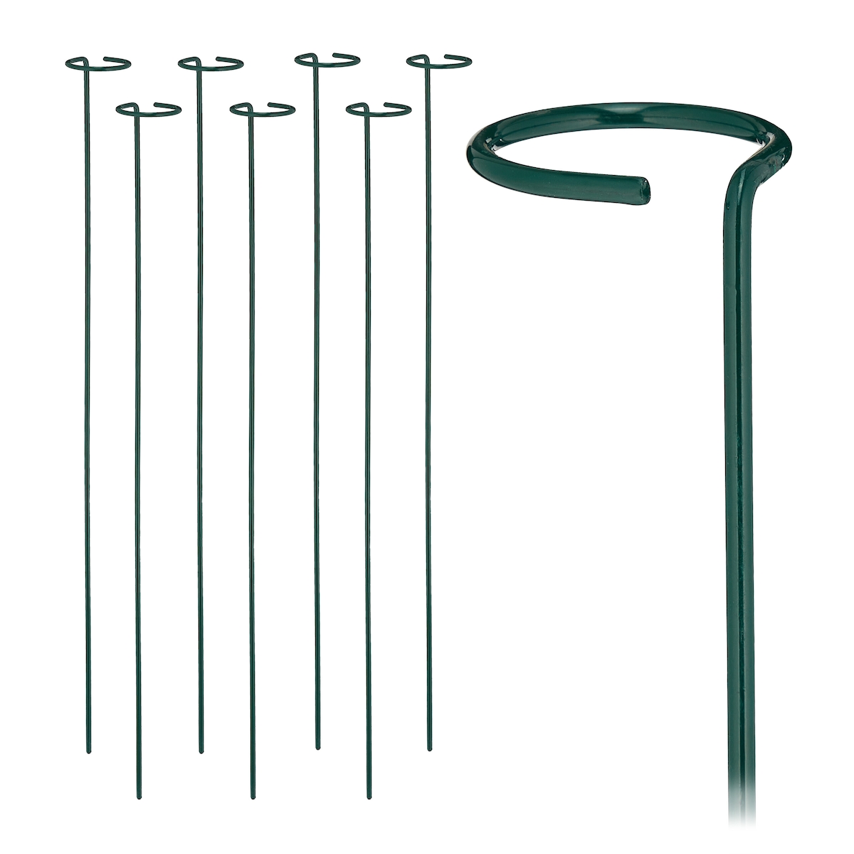 Relaxdays Pflanzstäbe Metall, 8er Set, Rankstäbe mit Ring, Metallstäbe Garten, Rankhilfe Stäbe, 80 cm lang, dunkelgrün
