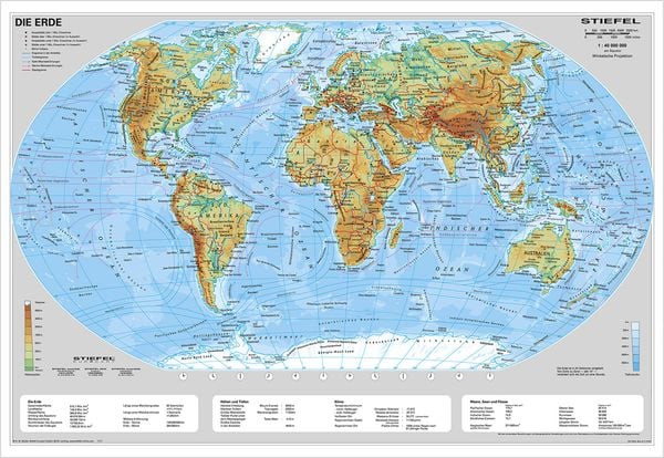 Die Erde, physisch 1 : 40 000 000. Wandkarte Kleinformat ohne Metallstäbe, Buch von Heinrich Stiefel, Stiefel Eurocart, 978-3-929627-41-1