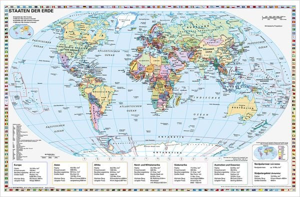 Staaten der Erde, politisch 1 : 40 000 000. Wandkarte Kleinformat ohne Metallstäbe, Buch von Heinrich Stiefel, Stiefel Eurocart, 978-3-929627-40-4