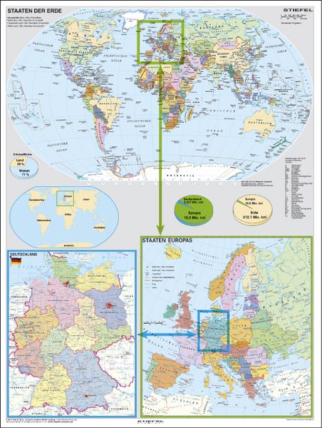 Deutschland und Europa in der Welt politisch. Wandkarte Großformat ohne Metallstäbe, Buch von Heinrich Stiefel, Stiefel Eurocart, 978-3-935794-32-9