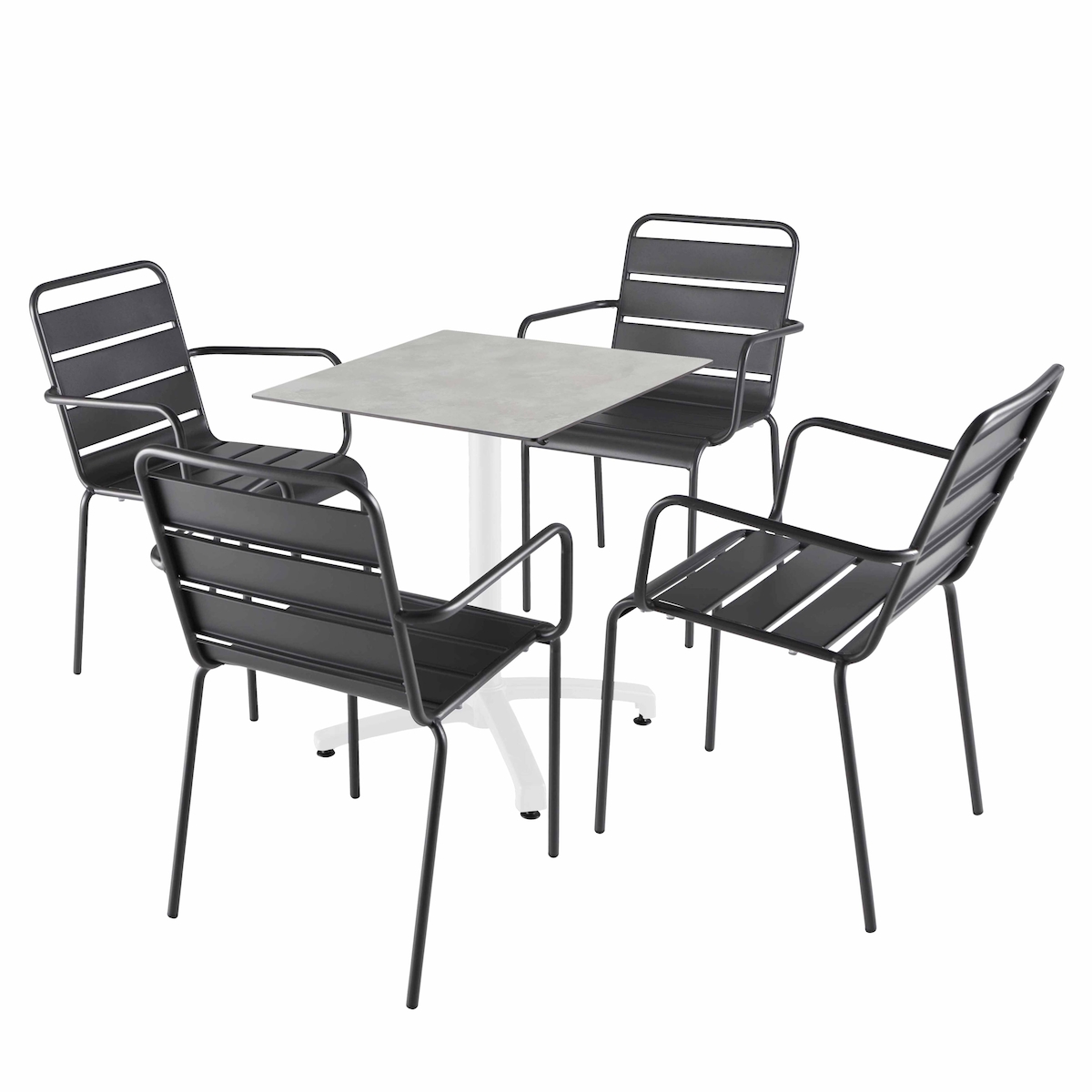 Oviala Business Set Tisch 60 cm hellgrauer Beton und 4 graue Metallstühle