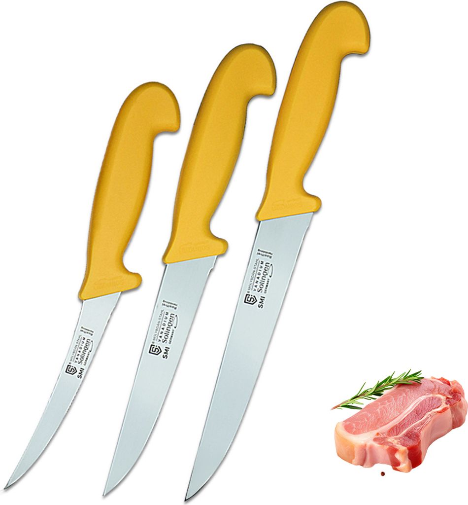SMI 3 Stück Metzgermesser Set - Solingen Fleischmesser & Ausbeinmesser, Gerade und Gebogen, Edelstahl, Germany