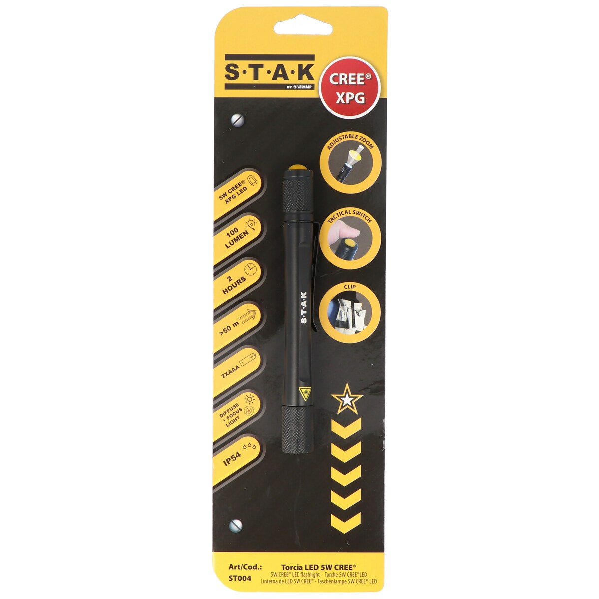 Velamp LED-Leuchtstift mit einer CREE XPG fokussierbar, max. 100 Lumen 5W inklusive 2 AAA Micro Alkaline Batterien
