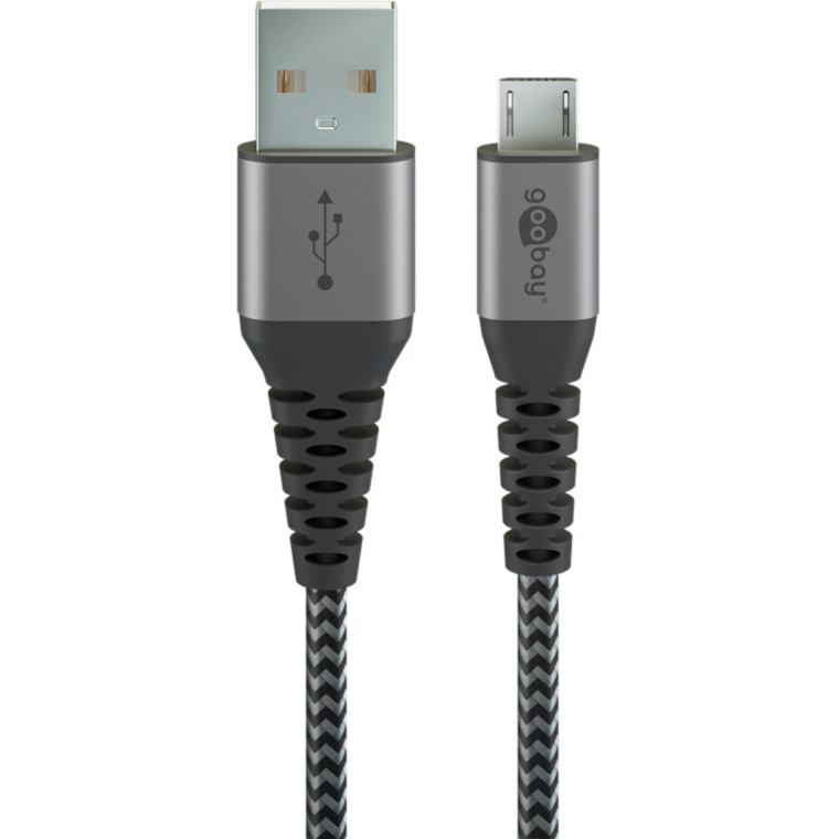 goobay USB 2.0 Kabel, USB-A Stecker > Micro-USB Stecker, grau/silber, 1 Meter