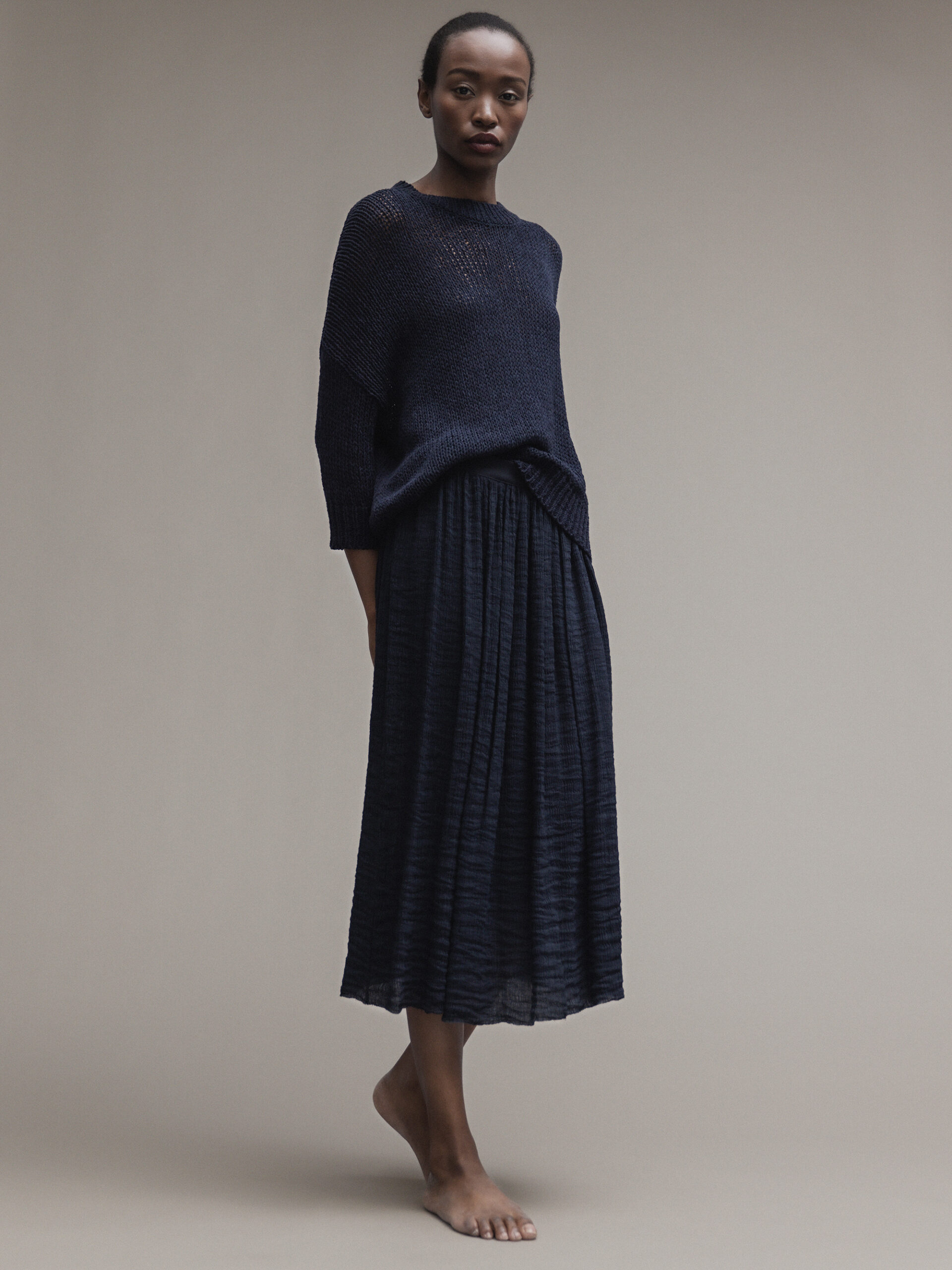 DANIELS Midi- Rock aus Leinen Damen (NAVY)