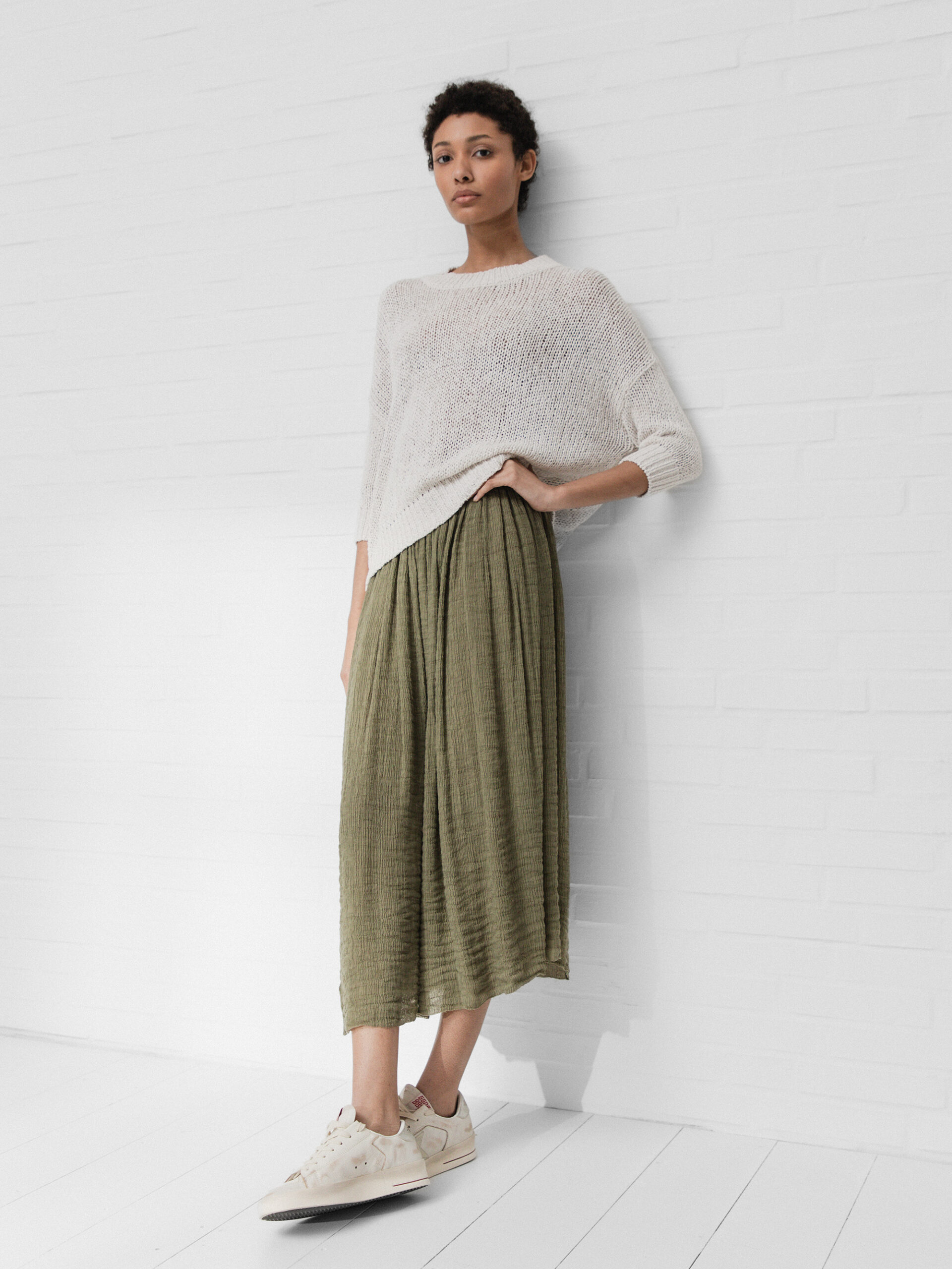 Swing Rock Midi hohe Taille Falten-Rock Gummibund Skirt maxi Midirock cremeweiss S-M