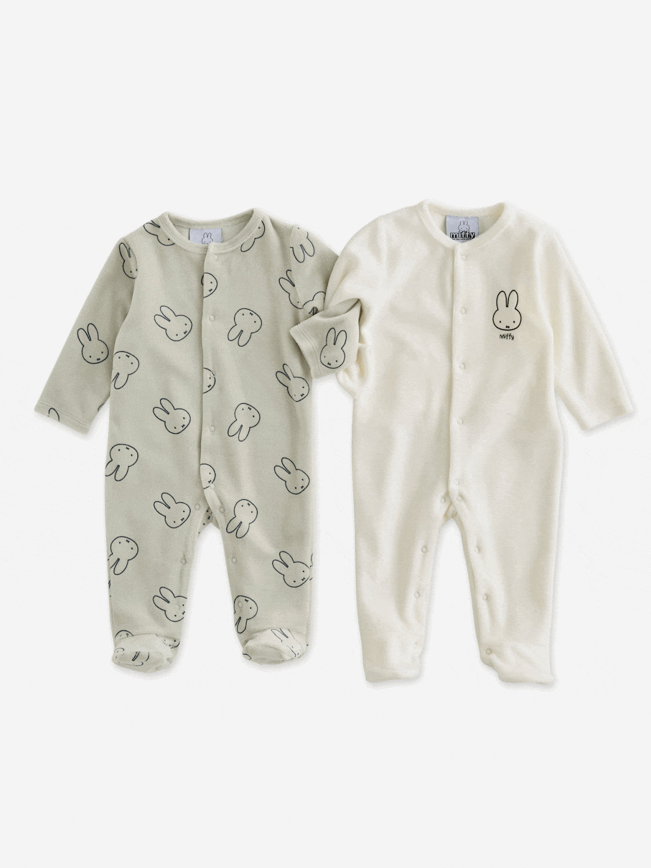 2er-Set Baby Samt-Schlafanzüge HASE MIFFY graugrün Gr. 71