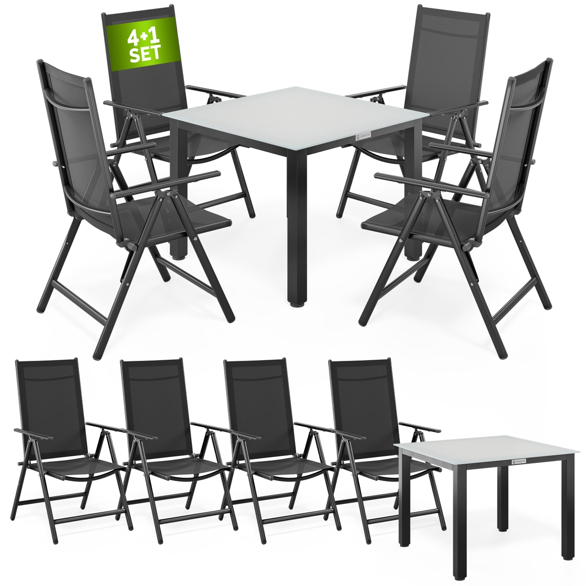 CASARIA 4+1 Sitzgruppe Aluminium Verstellbare Lehne Milchglas Silber