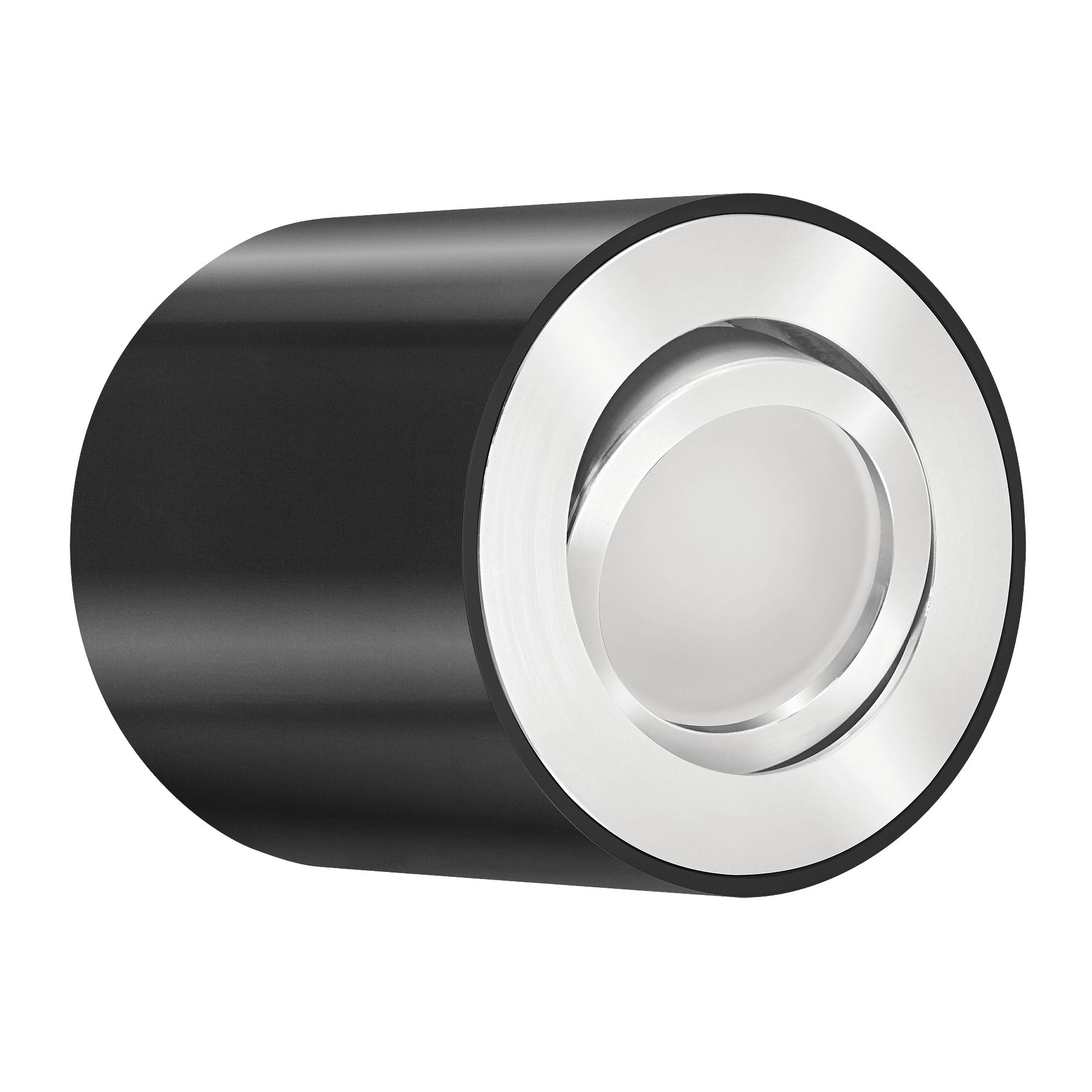 LED-Aufbaustrahler GU10 | 230V | DIMMBAR | 7W statt 80W | 120° Milchglas | 93 Cri | Aluminium | Forma Tube | schwarz | rund (2700K, chrom-poliert)