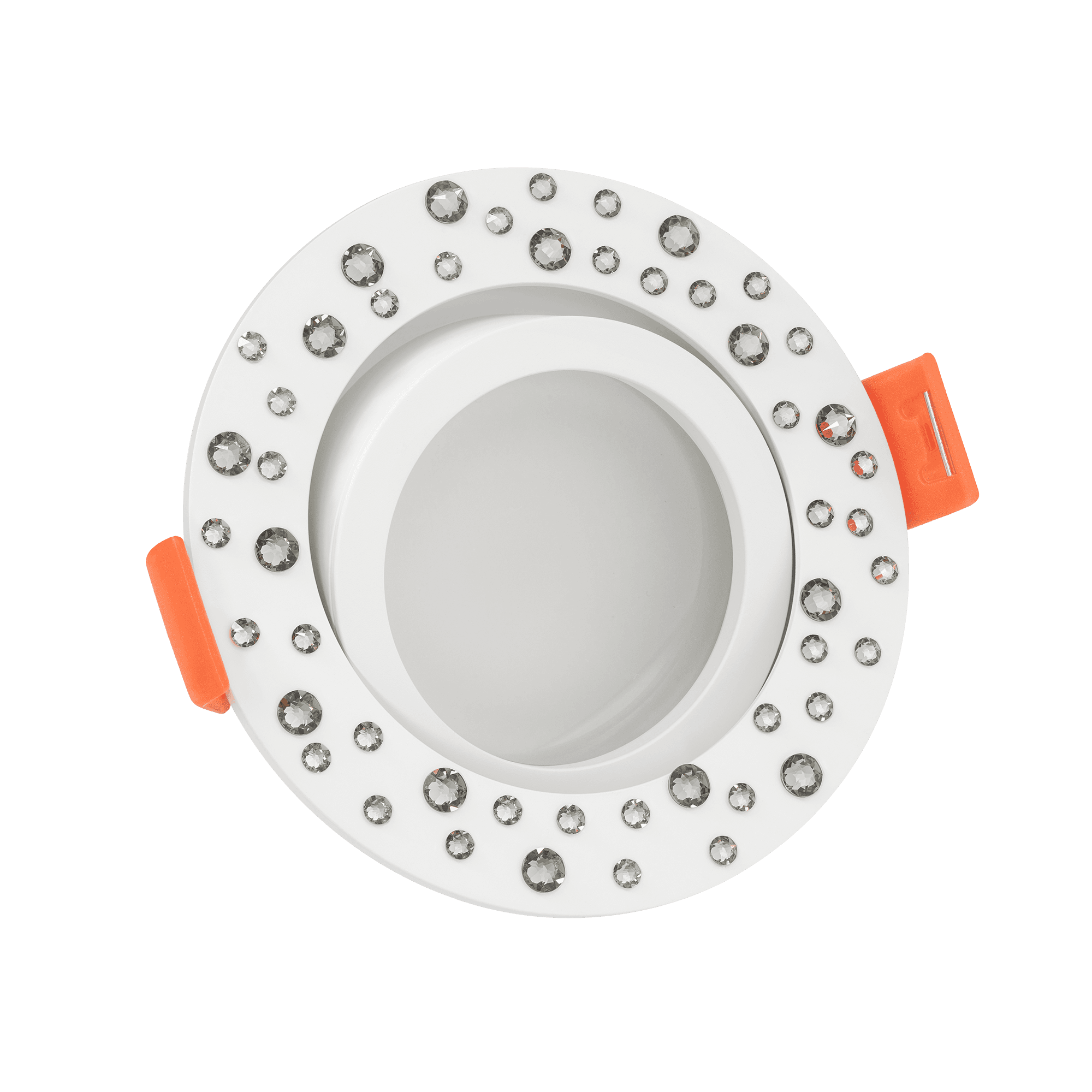 LED-Einbaustrahler Diamond | IP44 | extra flach 25mm | 230V & DIMMBAR | 7W statt 70W | 120° Milchglas | 90 CRI (3000K, weiß / klare Kristalle)