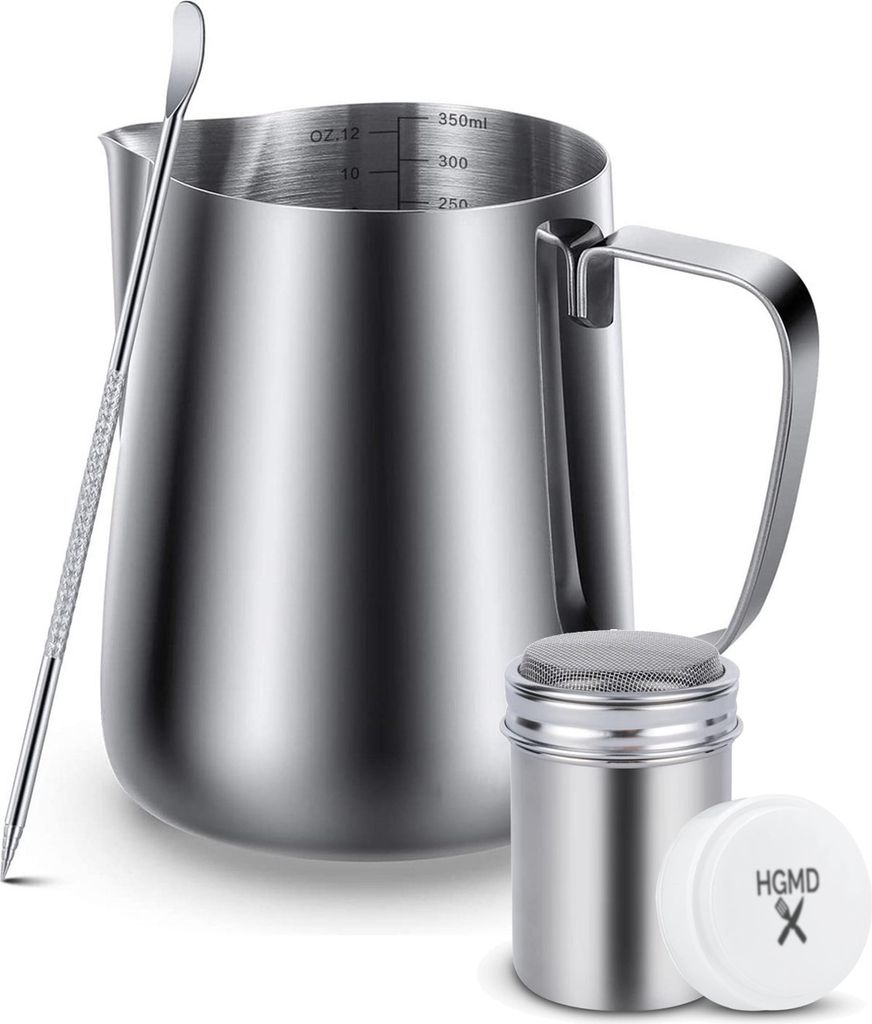 HGMD Milchkännchen 350ml - Milchschaumkännchen - Milchkrug - Milchkännchen - Milchkännchen - Inklusive Art Pen & Strooipotje - Latte Art - Edel...