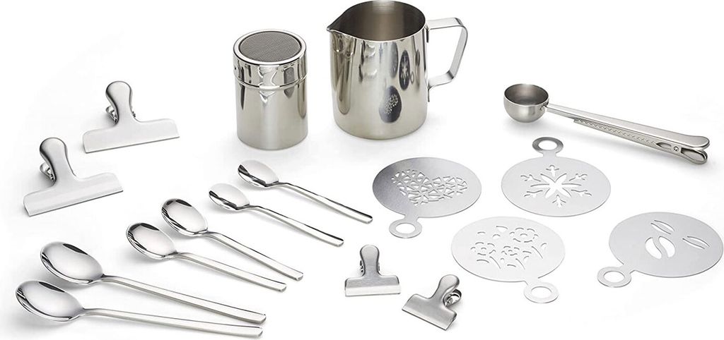 ECHTWERK Kaffeezubehör-Set, 23-tlg, Milchschaumkännchen 350 ml, Kakaostreuer, 4x Espresso-, 4x Cappuccino-, 4x Latte Macchiato-Löffel, 4x Kaffee...