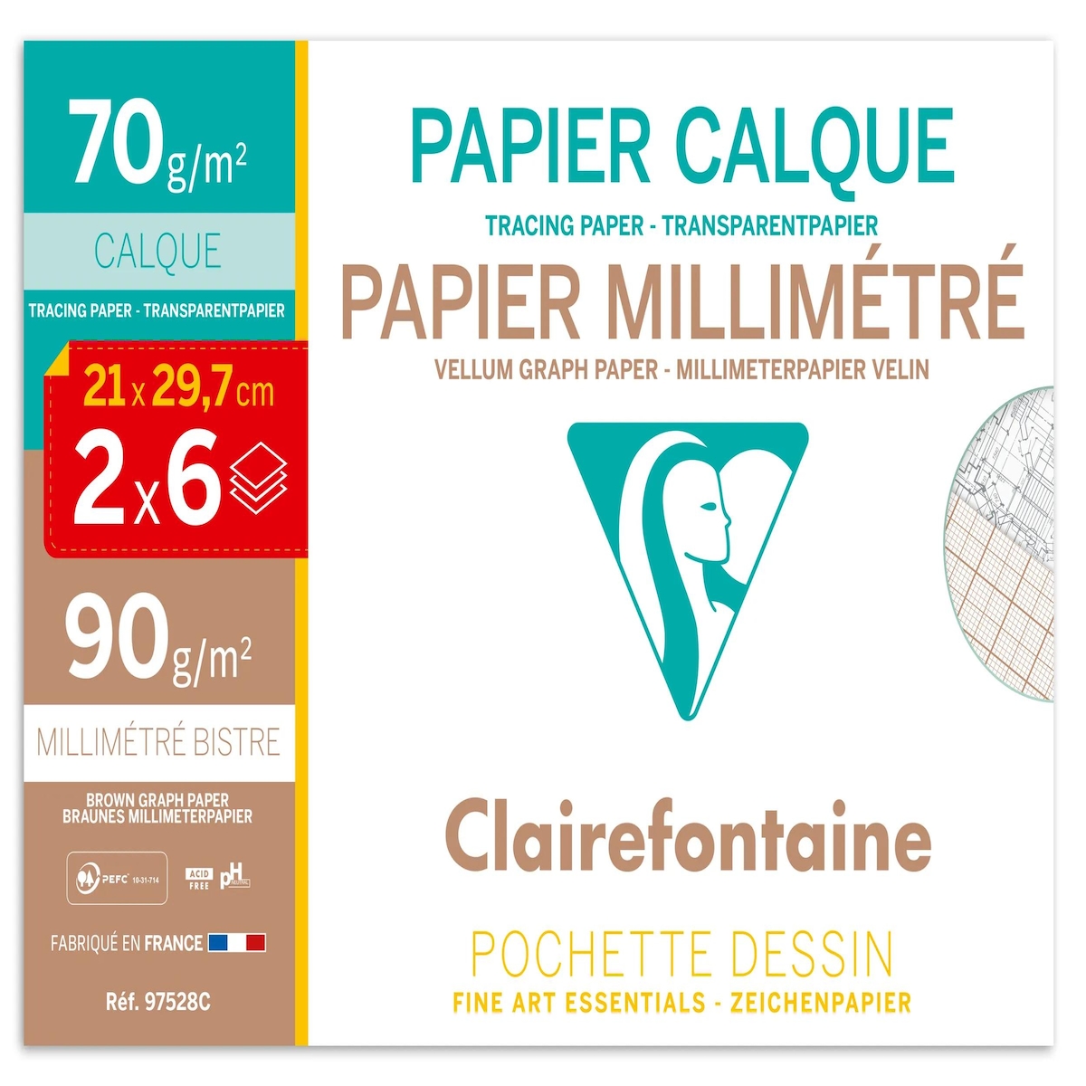 Clairefontaine 10x Millimeterpapier A4, Packung mit 6 Blatt + Transparentpapier 6 Blatt, 70g - 97528C