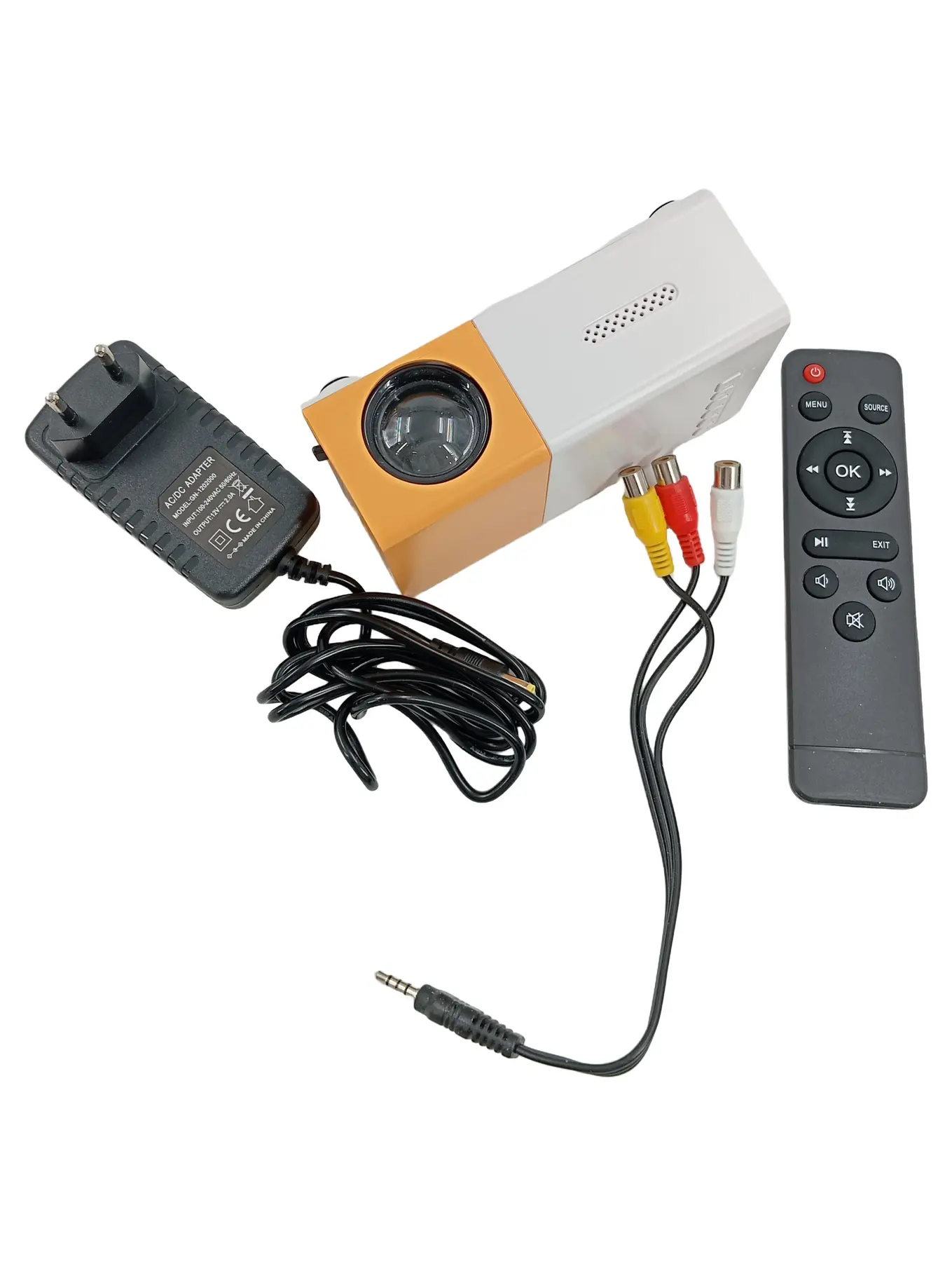 MARKENLOS Mini LED Projektor Beamer Heimkino mit Fernbedienung AV USB HDMI Weiß/Gelb