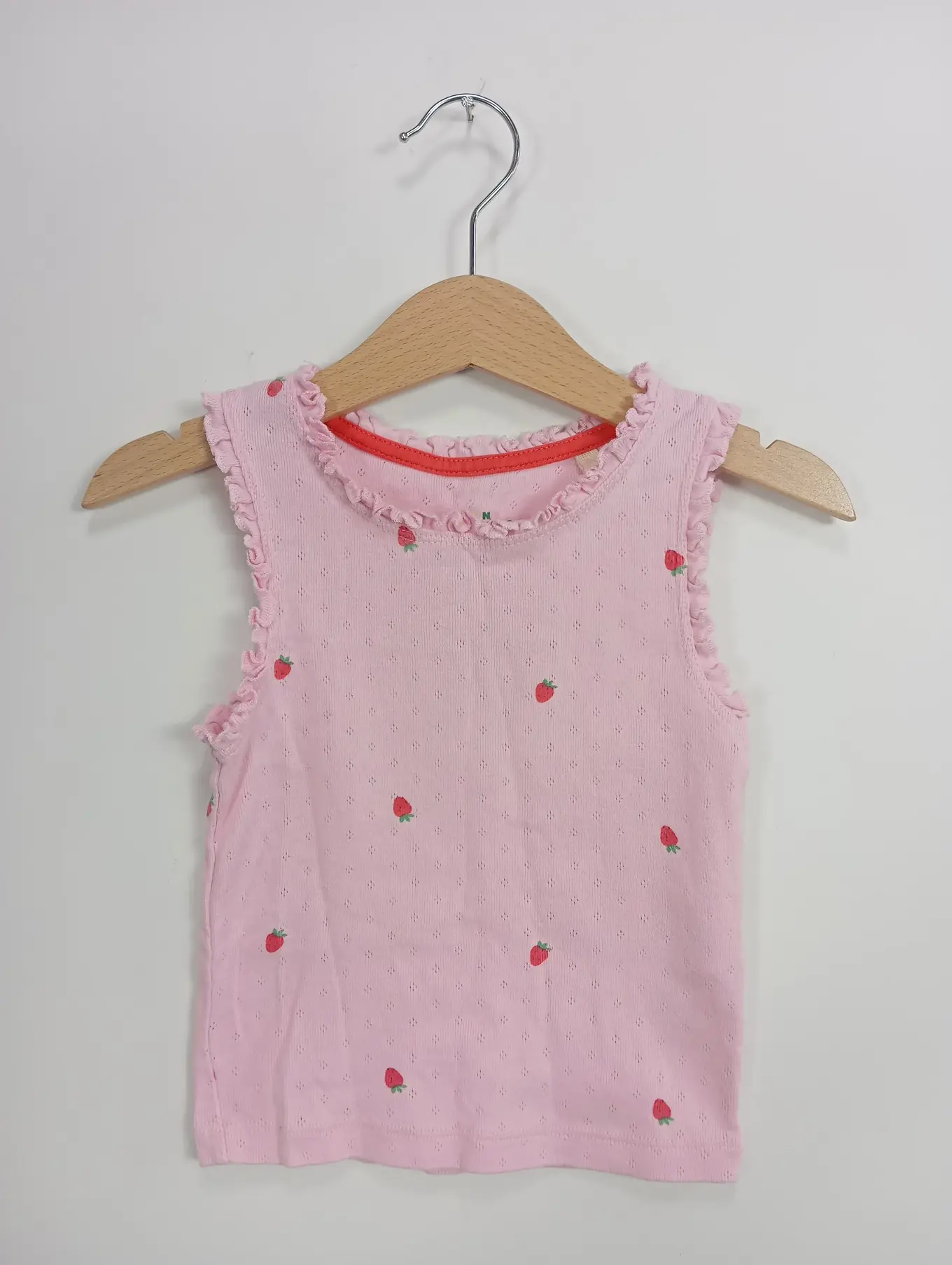 MINI BODEN Top Kinder Mädchen Rosa Gr. 92/98 Erdbeeren Rüschen Casual