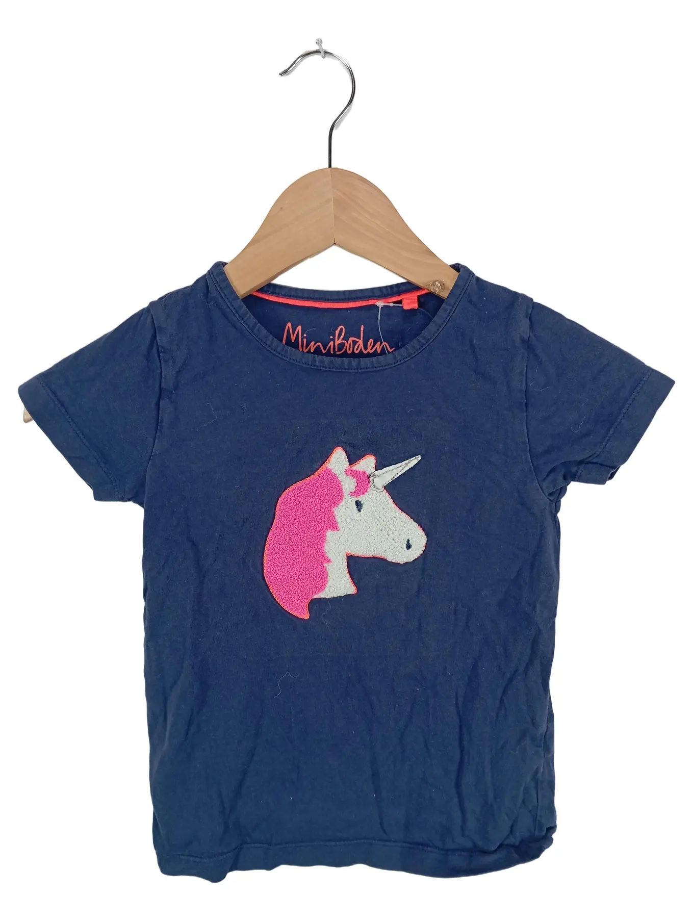 MINI BODEN Kinder T-Shirt Einhorn Applikation Blau Gr. 122 Baumwolle