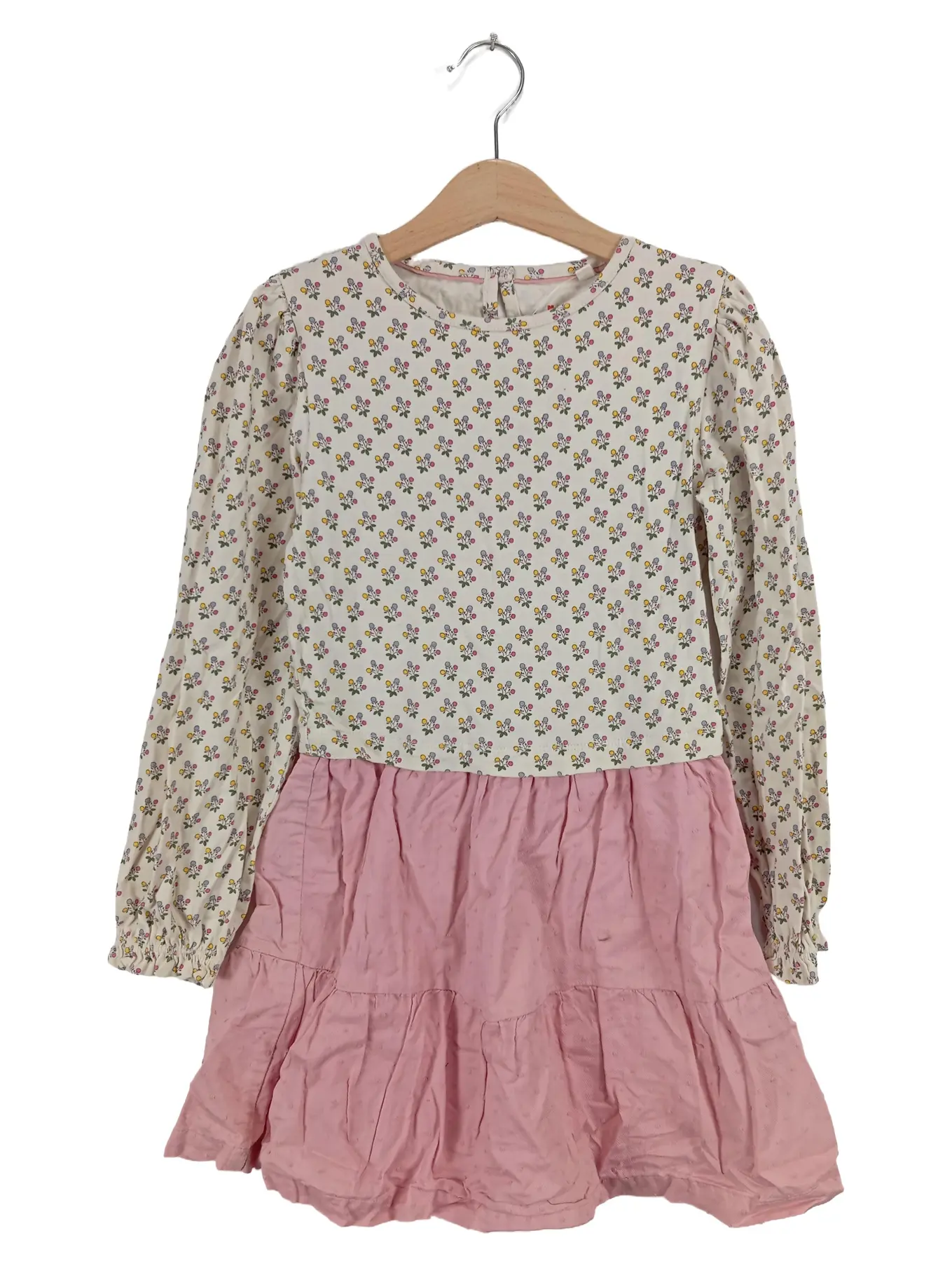 MINI BODEN Mädchen Blusenkleid Gr. 128 Blumenmuster Rosa Rüschen Baumwolle